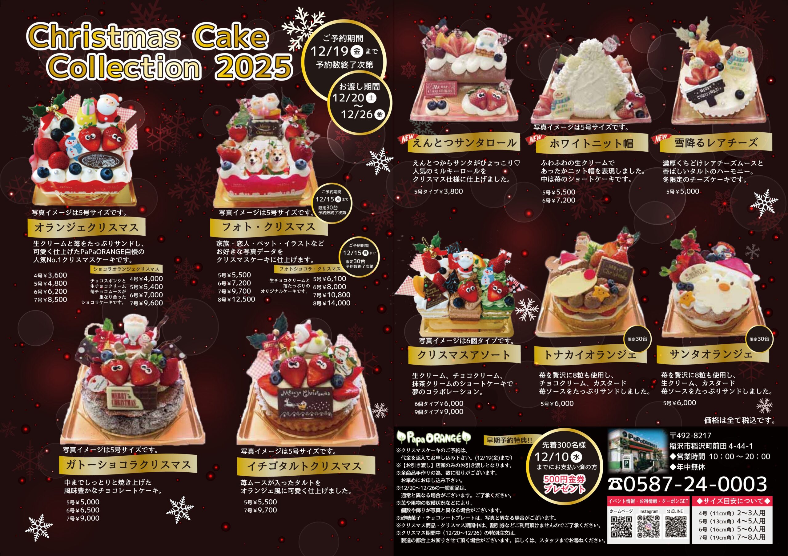 PaPa ORANGEから皆様へクリスマスケーキのご案内です。